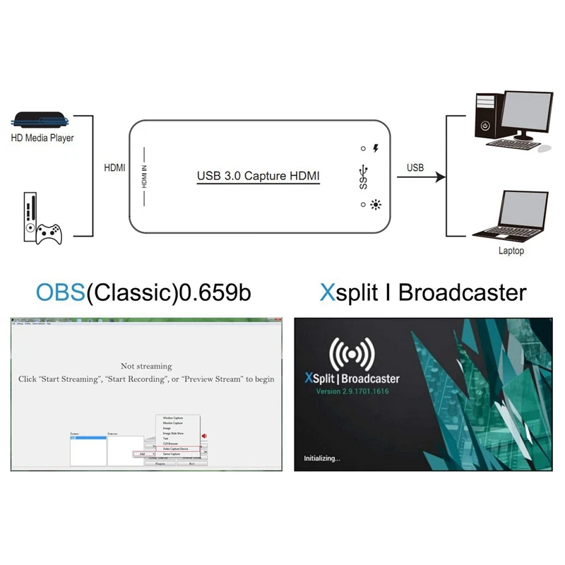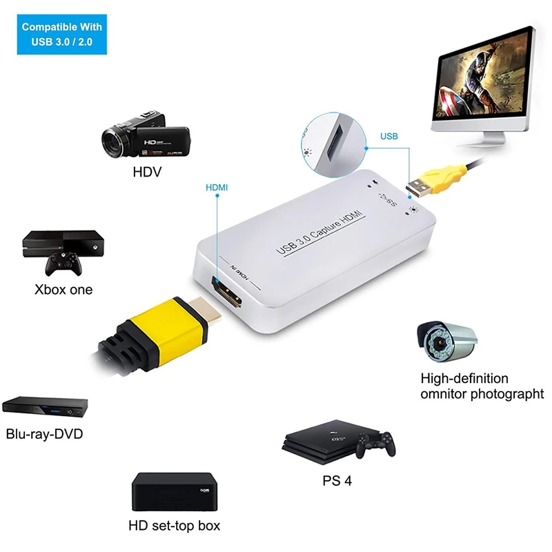 Review Top Usb 3.0 Capture Dongle AdapterHdmi To Usb 3.0 Live Streaming Game Capture Device For Ps4 Xbox One 3
